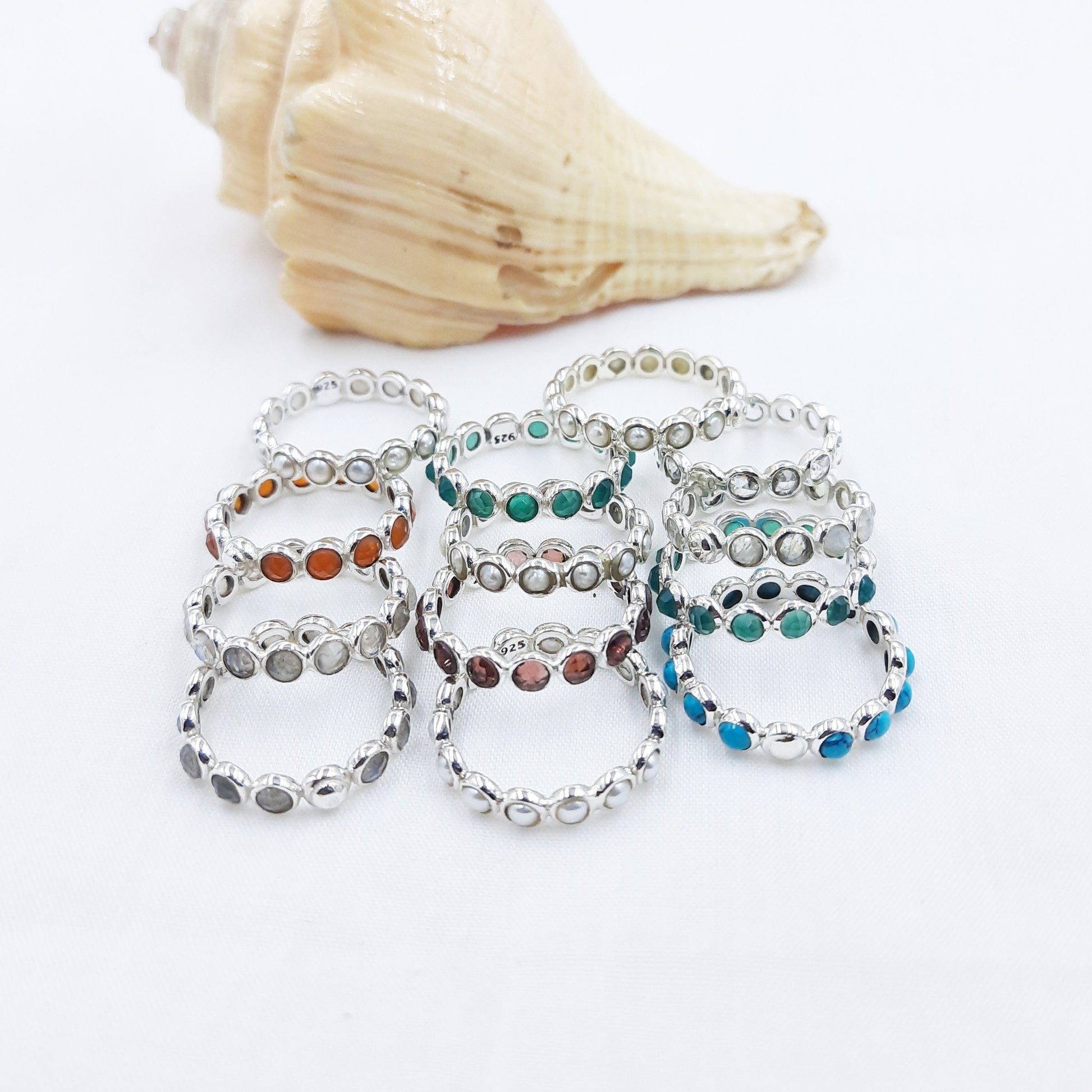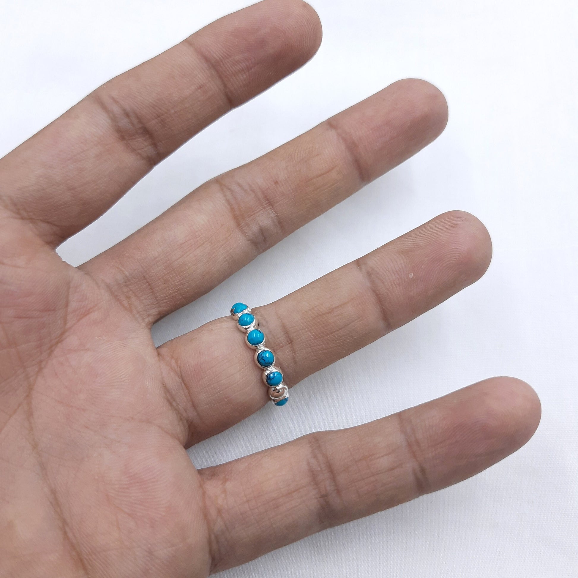 Bezel Turquoise ring eternity silver ring band Semi precious stone women engagement ring gift for her mothers day gift birthday gift 925 sil