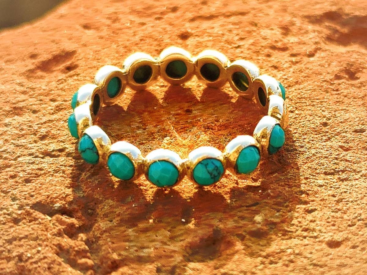 The Bezel Turquoise is an infinity band ring bezel turquoise Semi Precious stone. This eternity ring can be worn daily as well as on special occasions. Perfect for a gift!